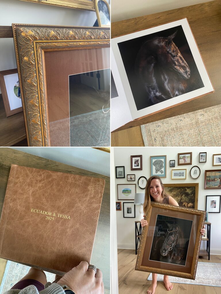 I’m in love with what we created for this duo (seen at the bottom of the post), and especially thrilled that Tessa chose to give Q his own special place on a wall in her charming historic downtown Columbia, SC home. This large custom wall portrait with silk matting to match Q’s brow band absolutely had me melting.