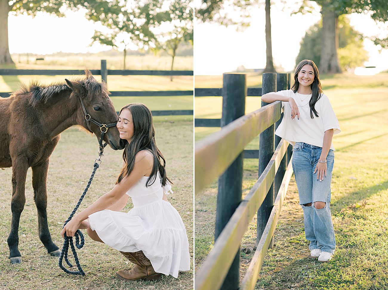 She included two of her favorite companions, her young horse and her beloved dog, which made the session even more personal and heartfelt. From walking through sunflower fields to quiet moments with her animals and family, every image reflected her down-to-earth personality and love for country living.